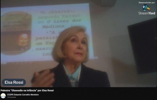 Na noite do dia 20 de outubro, na sede do Centro de Cultura, Documentação e Pesquisa do Espiritismo, houve palestra presencial e transmitida pela internet sobre o tema “Obsessão na infância” por Elsa Rossi, presidente do British Union of Spiritism Societies (de Londres). A reunião foi aberta por Júlia Nezu, presidente do CCDPE e da USE-SP. A expositora profere algumas palestras em São Paulo e é autora de livros dedicados à infância editados pelo CCDPE e pela USE-SP. No dia 26, domingo às 10h, na sede do CCDPE (São Paulo), participará do lançamento do livro “Movimento Espírita Internacional. Origens, ideais e experiências” (Ed. CCDPE), como co-autora, juntamente com Antonio Cesar Perri de Carvalho (Brasil), Charles Kempf (França). Informações: https://ccdpe.org.br/produto/movimento-espirita-internacional-origens-ideais-e-experiencias/ Acesse a palestra pelo link: https://www.youtube.com/watch?v=TiQlIfdL2vM