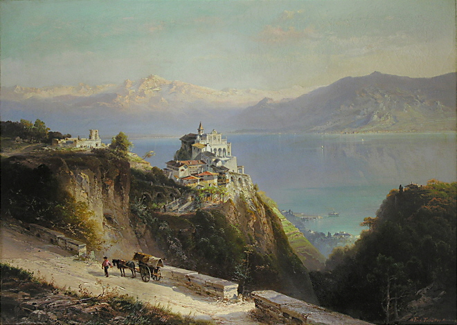Madonna del Sasso em Locarno,Lago Maggiore. Óleo sobre tela de Ferdinand Feldhütter (1841-1898) Imagem/fonte: https://commons.wikimedia.org/wiki/File:Feldh%C3%BCtter_Madonna_del_Sasso.jpg |