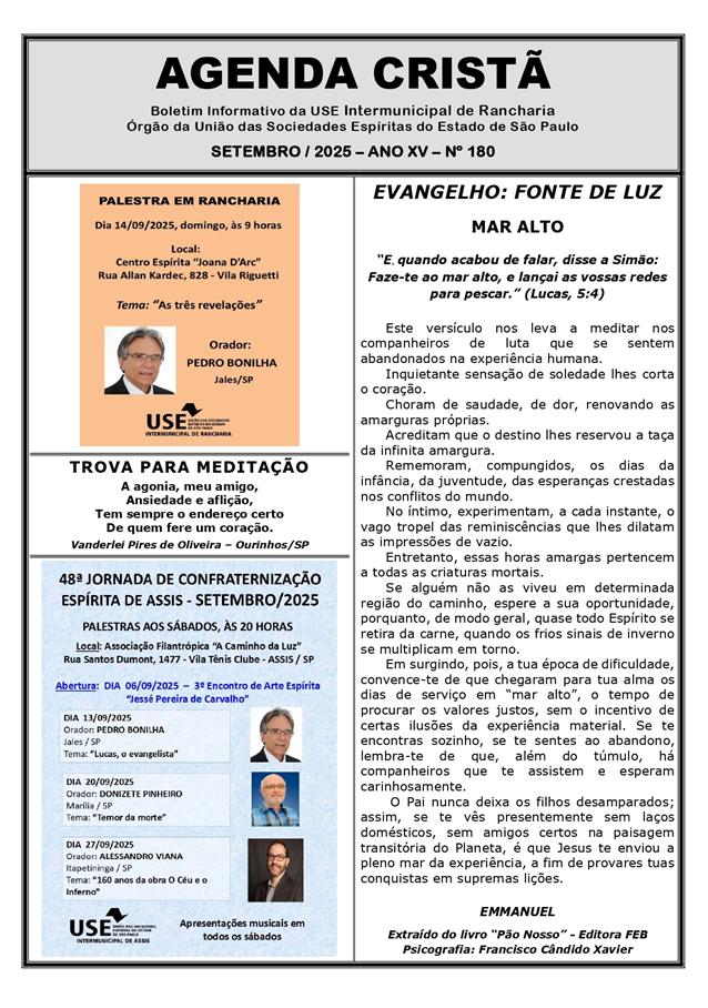 Jesus Boletim diário de Notícias do Movimento Espírita São Paulo, SP, sexta-feira, 05 de setembro de 2025. Compiladas por Ismael Gobbo |