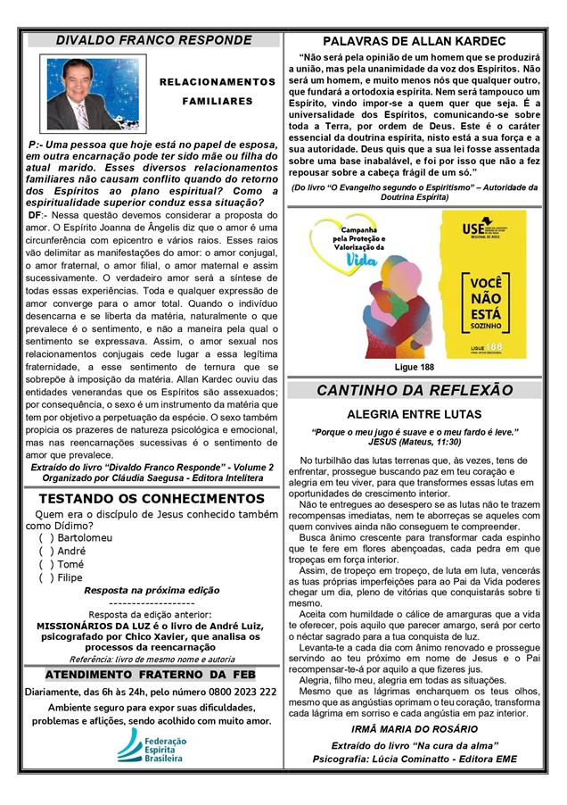Informe Luz Espírita N° 280 - Sexta-feira, 29 de agosto, 2025 |