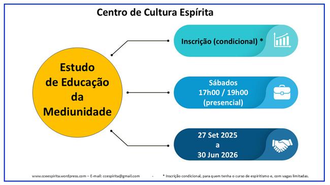 2 - Estão abertas as inscrições para os cursos de espiritismo e de educação da mediunidade (gratuitos) pelo e-mail [email protected]