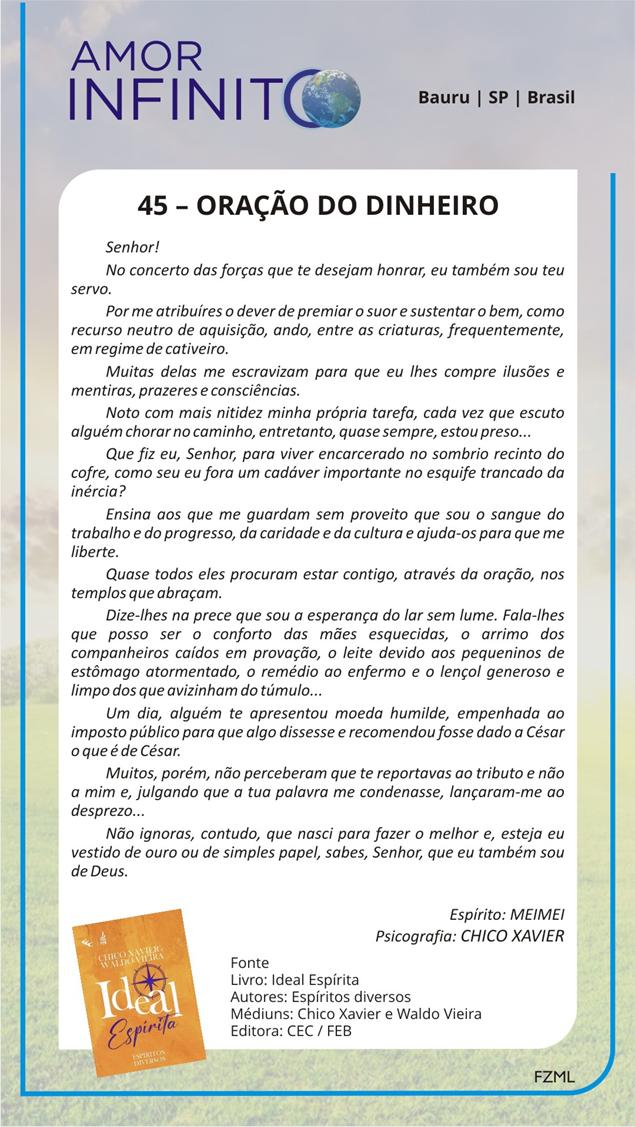 Pelo Espírito Emmanuel. Psicografia de Francisco Cândido Xavier. Livro: Fonte Viva. Lição nº 140. Página 315.