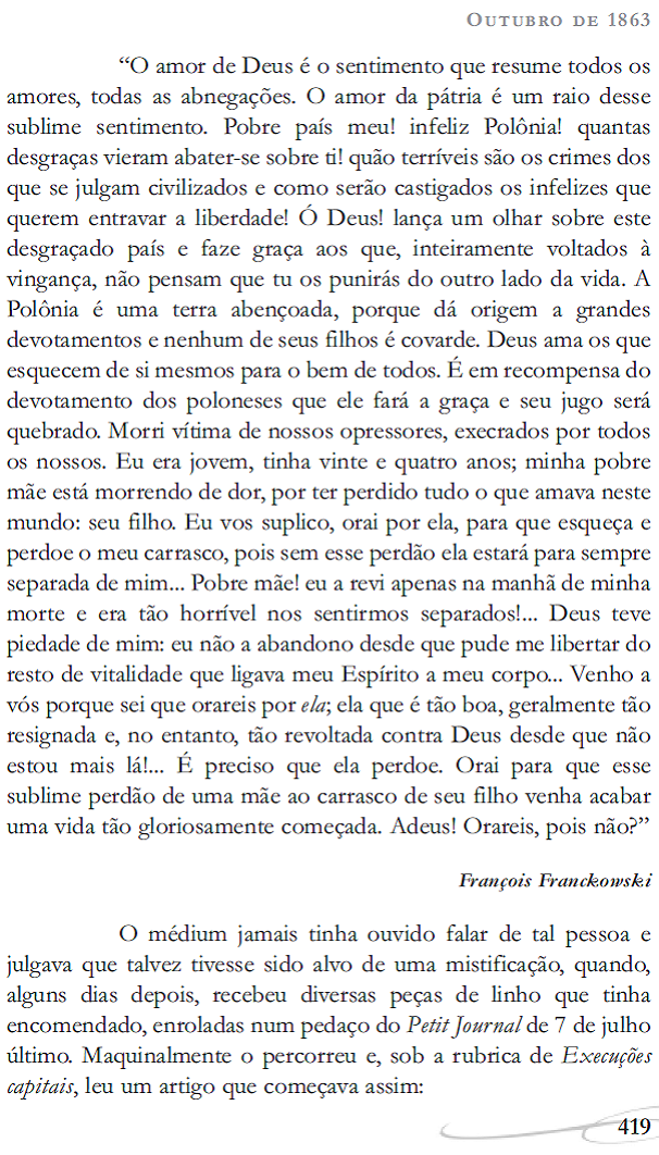 Artigo do Le Petit Journal intitulado Exécutions capitales, na 4ª. Coluna, mencionado por Allan Kardec na Revista Espírita de outubro de 1863. Imagem/fonte: https://gallica.bnf.fr/ark:/12148/bpt6k5882705/f3.item Continuação do artigo do Le Petit Journal intitulado Exécutions capitales, na 1ª. Coluna, no alto, mencionado por Allan Kardec na Revista Espírita de outubro de 1863. Imagem/fonte: https://gallica.bnf.fr/ark:/12148/bpt6k5882705/f3.item |
