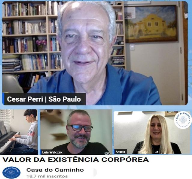 Na noite do dia 20 de setembro Cesar Perri desenvolveu o tema “valor da existência corpórea”; uma reflexão sobre o corpo físico como instrumento essencial para a evolução espiritual, com base em obras de Kardec e citando André Luiz (FCX), que o define como “o maior e o primeiro empréstimo recebido de Deus”. A reunião virtual do Grupo Espírita Casa do Caminho foi coordenada por Luís Walczak, com atuação de Ângela de Mattos Basile, e com gravação ao piano pelo jovem Lucca Casagrande. Acesse pelo link: https://www.youtube.com/watch?v=GmMv92VHRjE&t=353s
