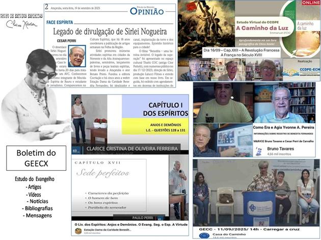 Grupo de Estudos Espíritas Chico Xavier Boletim semanal – Ano XI. 4a semana de Setembro de 2025 |