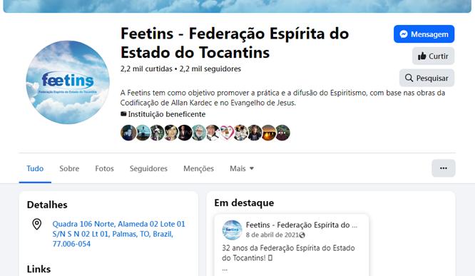 FEETINS. Federação Espírita do Estado de Tocantins Palmas |