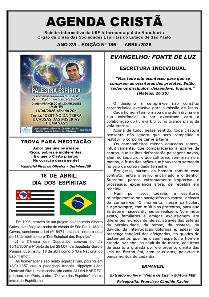 Jornal AGENDA CRISTÃ - Rancharia (SP) - Abril/2026 |