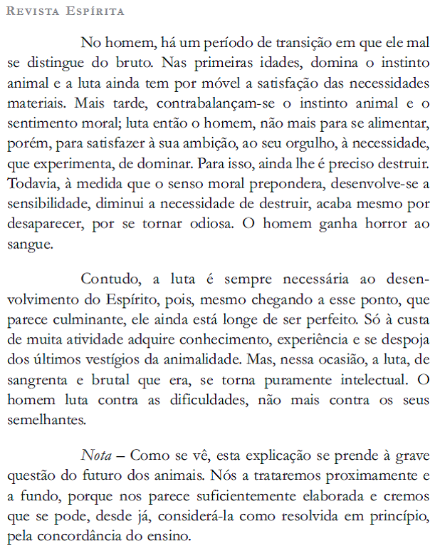 Conclui-se, assim, que o homem não é um ser independente. Pelo contrário, ele depende de seu semelhante ao mesmo tempo em que é impulsionado ao progresso; por isso impõe-se lhe a necessidade de aprender a amar o seu próximo e não explorá-lo física, intelectual e sentimentalmente.