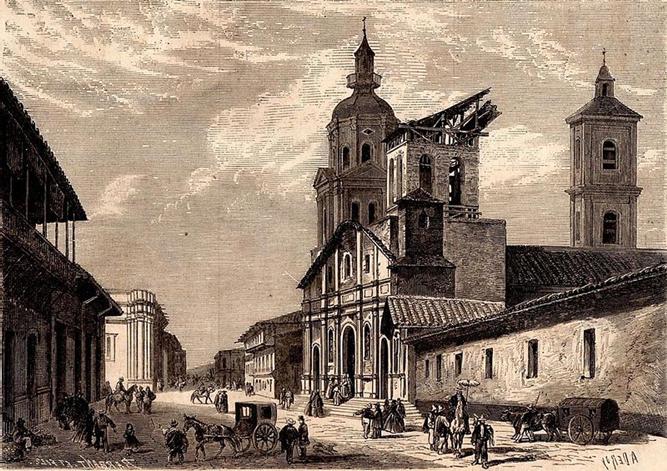 Igreja da Companhia de Jesus , localizada na Plaza del Consulado, em Santiago do Chile , destruída por um incêndio em 8 de dezembro de 1863 e que custou a vida a mais de duas mil pessoas. Fonte: https://es.wikipedia.org/wiki/Iglesia_de_la_Compa%C3%B1%C3%ADa_(Santiago_de_Chile)
