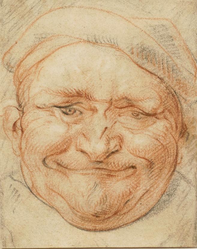 Cabeça de um homem alegre usando um boné. Autor: Jacob Jordaerns. Entre 1640 e 1645. Giz vermelho, preto e branco sobre papel. Imagem/fonte: https://commons.wikimedia.org/wiki/File:Jacob_Jordaens_-_Head_of_a_Cheerful_Man_Wearing_a_Cap.jpg |