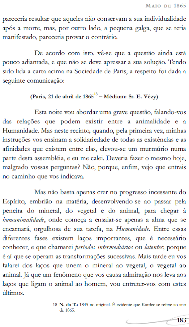 Publicação em sequência Revista Espírita – Ano 8 - 1865 |
