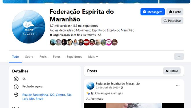 Clique aqui: https://www.facebook.com/federacaoespiritamaranhao/?locale=pt_BR