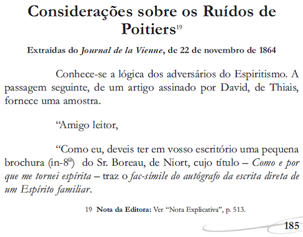 Publicação em sequência Revista Espírita – Ano 8 - 1865 |