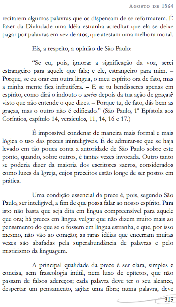 (Copiado de O Evangelho segundo o Espiritismo. Por Allan Kardec. Tradução de Evandro Noleto Bezerra. FEB – Federação Espírita Brasileira) |