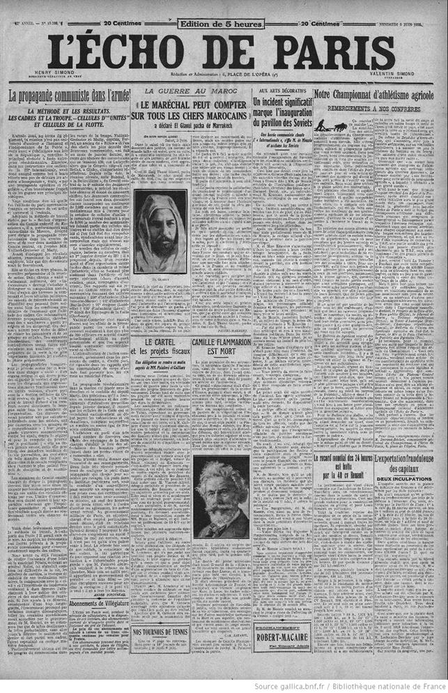Jornal L´Echo de Paris do dia 05-06-1925 de Paris anuncia a morte de Camille Flammarion ocorrida em 03-06-1925. |