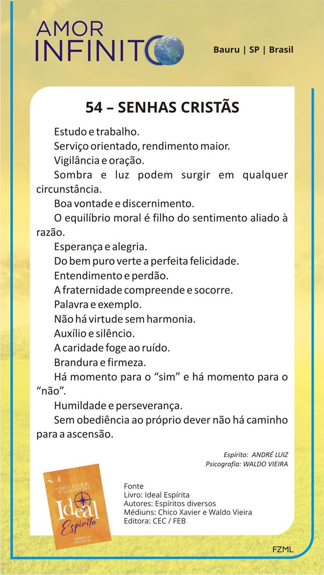 Pelo Espírito Emmanuel. Psicografia de Francisco Cândido Xavier. Livro: Caminho, Verdade e Vida. Lição nº 86. Página 187.