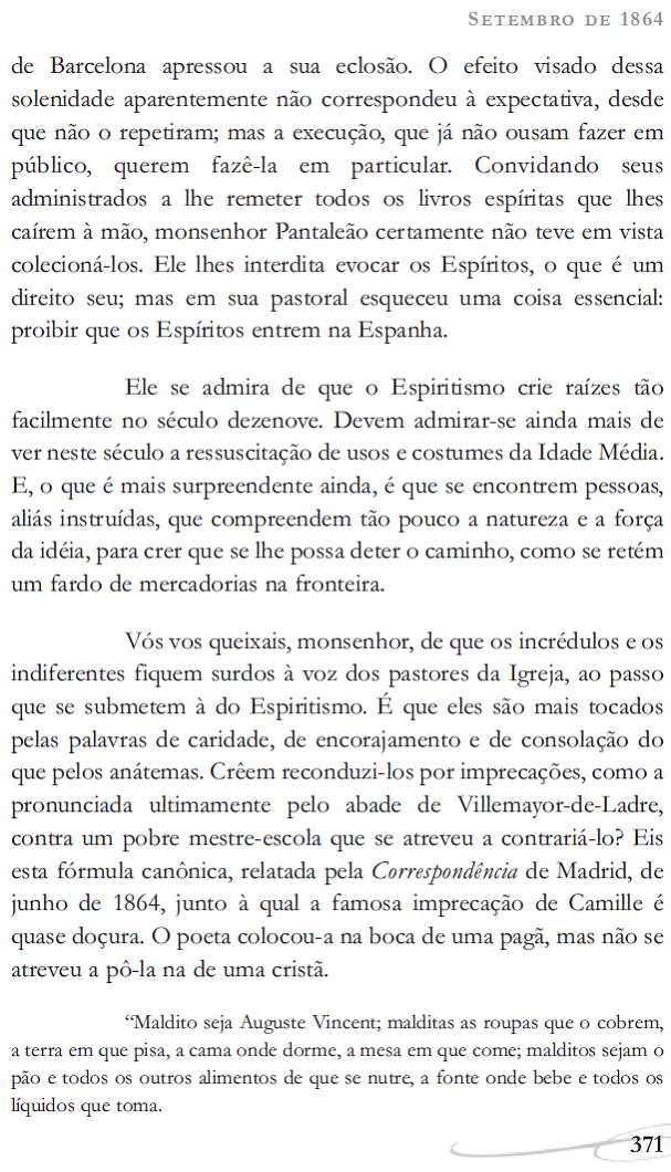 7º) Revista Espírita (Año II, 1859), de Kardec, do francês para o espanhol (EDICEI, 2009; em 2ª edição, 10/2010, com 369 pp. e 428 N. do T.), contendo um Prefácio, ditado em castelhano, em 05/09/2008, pelo Espírito José María Fernández Colavida (chamado “o Kardec espanhol”) ao médium Divaldo Pereira Franco;