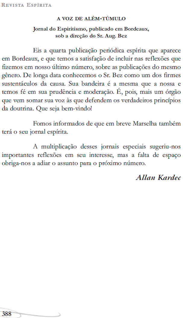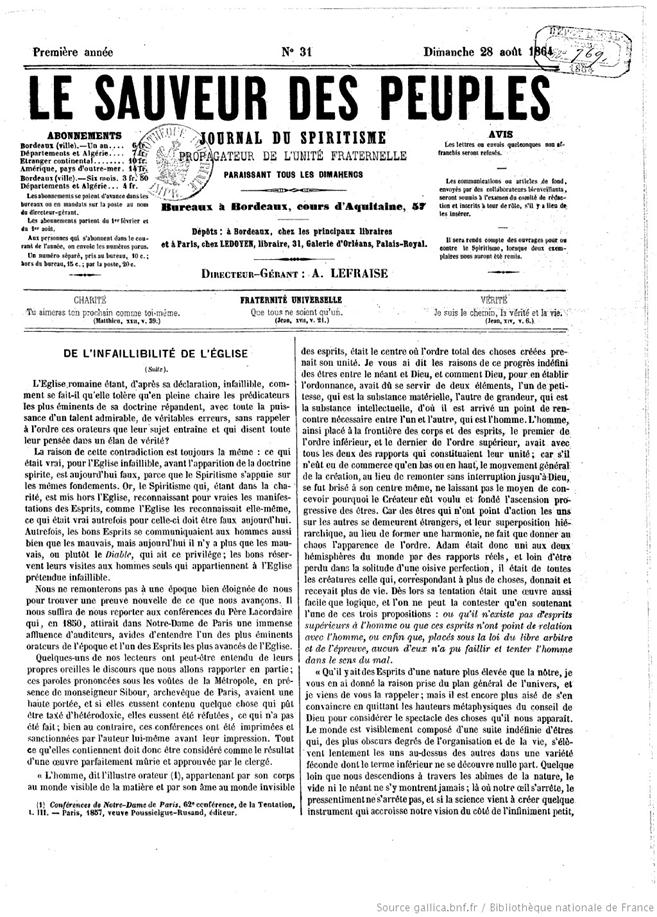 “Le Sauveur des Peuples. Journal du Spiritisme”. Bordéus, França. 28/08/1864. Fonte: https://gallica.bnf.fr/ark:/12148/bpt6k5847595d/f1.image.texteImage |