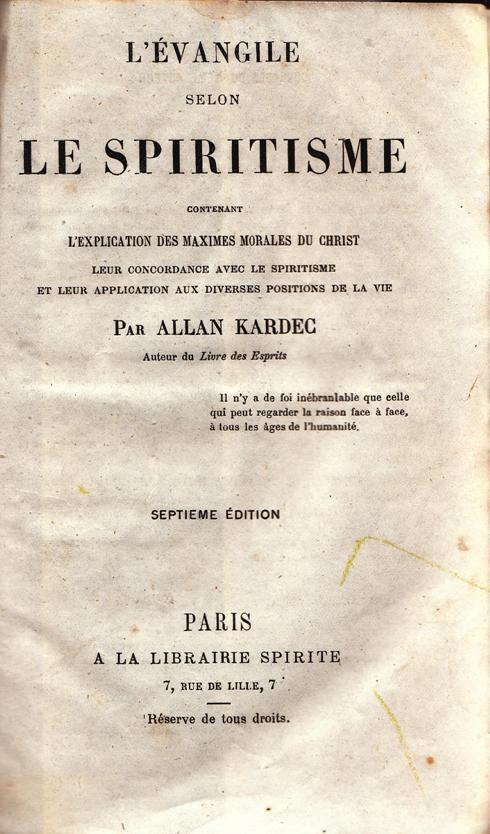 O Evangelho Segundo o Espiritismo de Allan Kardec. Lançado em 15 de abril de 1864 em Paris, França. Imagem/fonte: https://pt.wikipedia.org/wiki/O_Evangelho_segundo_o_Espiritismo