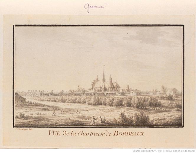 Vista da Cartuxa de Bordéus: [desenho] / J. Daubigni del. Fonte: https://gallica.bnf.fr/ark:/12148/btv1b77419233.item