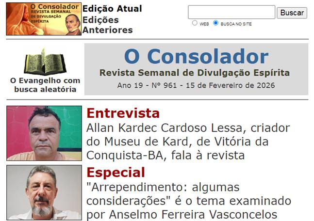 O Consolador. Revista Semanal de Divulgação Espírita. Londrina, PR. Acesse abaixo |