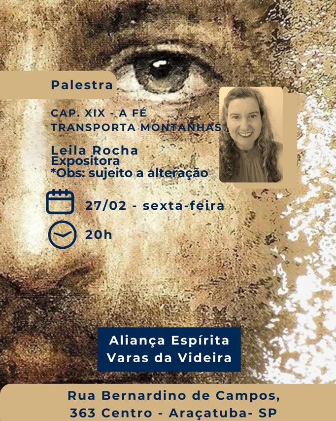 1 - O Centro de Cultura Espírita de Caldas da Rainha, vai levar a cabo uma conferência subordinada ao tema "Corpo físico, Casa do Espírito" que será proferida pelo enfº Miguel Miguel, no dia 27 de Fevereiro de 2026, 6ª feira, às 21h00, com entrada livre e gratuita. Posteriormente, teremos a Fluidoterapia (passe espírita) e o atendimento em privado.