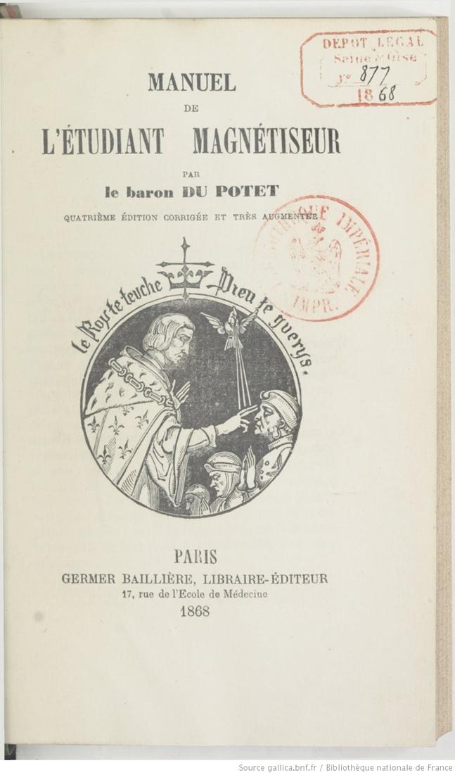 Manual do estudante magnetizador Manuel de l'étudiant magnétiseur (4e édition corrigée et très ... Du Potet de Sennevo Acesse aqui: https://gallica.bnf.fr/ark:/12148/bpt6k6374048x.texteImage |
