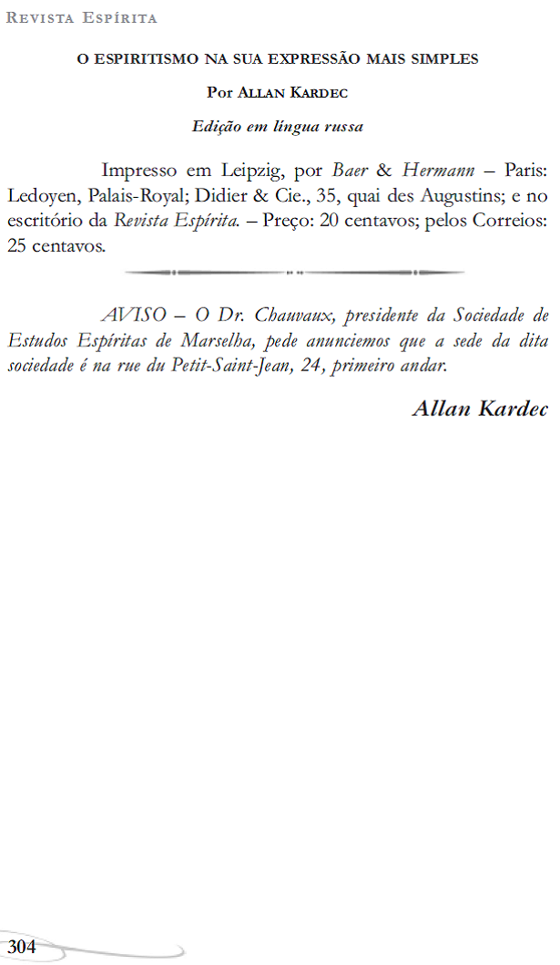 Publicação em sequência Revista Espírita – Ano 7 - 1864 |