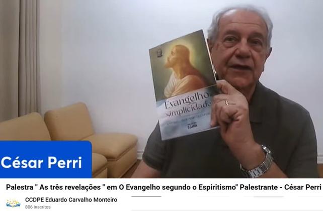 Na noite do dia 26 de janeiro, Cesar Perri desenvolveu palestra presencial no Centro de Cultura, Documentação e Pesquisa do Espiritismo de São Paulo, com transmissão pela internet, sobre o tema “As três Revelações – Moisés, Jesus e o Espiritismo” com base no Capítulo I – Não vim destruir a Lei, de “O Evangelho segundo o Espiritismo”. Fez uma relação entre cada mandamento do Decálogo, como ensinos de Jesus e princípios espíritas. Trata-se de série de palestras sobre essa obra de Allan Kardec. Em seguida há passes. O Centro de Cultura, Documentação e Pesquisa do Espiritismo Eduardo Carvalho Monteiro, de São Paulo localiza-se na Alameda dos Guaiases, 16 – Indianópolis/Planalto Paulista, São Paulo. Para acessar a palestra: https://www.youtube.com/live/s3eIXU29gIY