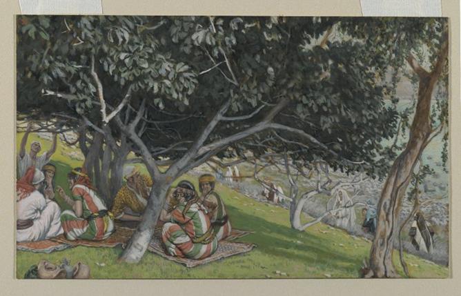 Museu do Brooklyn - Nathaniel sob a figueira (Nathanaël sous le figuier) - James Tissot Artista: James Tissot (1836–1902) wikidata:Q381248 q:en:James Tissot imagem da obra de arte listada no parâmetro de título desta página Título: Francês: Nathanaël sous le figuier Inglês: Nathaniel Under the Fig Tree Tipo de objeto: pintura em aquarela Editar isto no Wikidata Gênero: arte religiosa Editar isto no Wikidata Data: entre 1886 e 1894 Técnica: guache sobre grafite em papel vergé cinza Dimensões: altura: 16 cm (6,2 pol.); largura: 26,5 cm (10,4 pol.) Coleção: Museu do Brooklyn wikidata:Q632682. Imagem/fonte: https://commons.wikimedia.org/wiki/File:Brooklyn_Museum_-_Nathaniel_Under_the_Fig_Tree_%28Nathana%C3%ABl_sous_le_figuier%29_-_James_Tissot_-_overall.jpg |