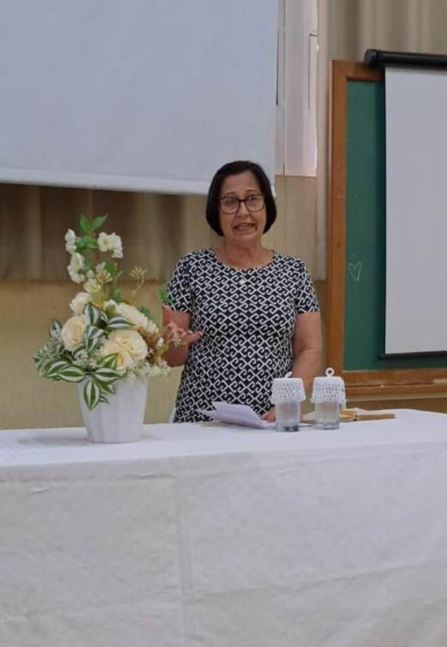 A oradora Heloísa Pires, filha de José Herculano Pires em palestra no Fraternidade Espírita Gina em São Paulo. 28-03-2015. Foto Ismael Gobbo |