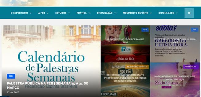 Palestra Pública na FEB/ Semana 15 a 21 de março Clique aqui: https://www.febnet.org.br/portal/2026/03/13/palestra-publica-na-feb-semana-15-a-21-de-marco/