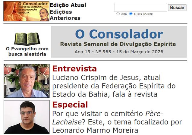 O Consolador. Revista Semanal de Divulgação Espírita. Londrina, PR. Acesse abaixo: |